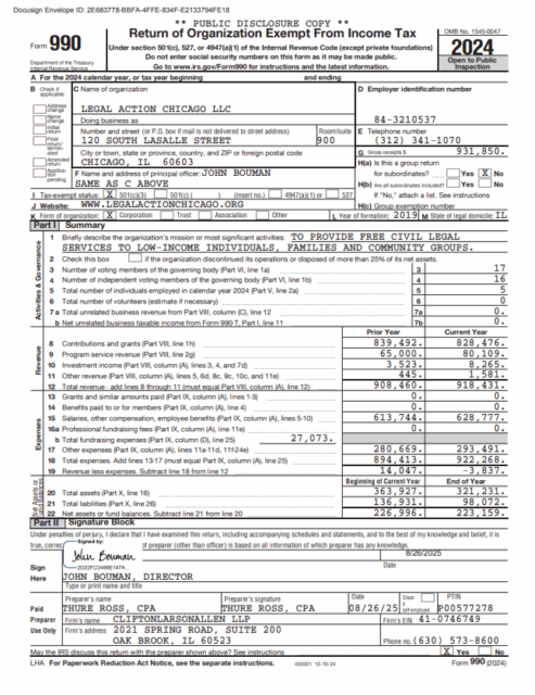 Financials 2024 - LEGAL ACTION CHICAGO 990 2023 - LEGAL ACTION CHICAGO 990 2022 - LEGAL ACTION CHICAGO 990 2021 - LEGAL ACTION CHICAGO 990 2020 - LEGAL ACTION CHICAGO 990 2019 - LEGAL ACTION CHICAGO 990